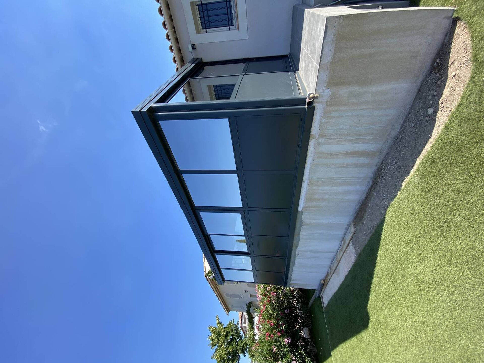 Nous avons posé un films sans tain miroir sur cette véranda sur une maison au Beausset qui est orienté coté sud et qui est exposé au soleil toute la journée ce qui rendait l'intérieur de la véranda invivable.